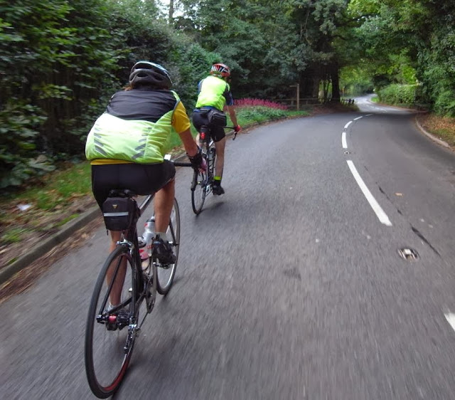 No fewer than 17 riders showed up for this lovely ride. After a short Ride Leader briefing where we reviewed 3 or 4 key elements of our Club’s new Group Riding Guidelines, we suitably split into three groups and off we went for a 37 mile scenic outing. The riders had more than they had bargained for as the journey included a bike wash through a 7 inch deep ford just before the Frensham Pond coffee stop. It was a bit of a challenge to manage such a large group but thanks to some precious tips on the “signposting” technique from Helen Juden and Chris Jeggo, we graduated to a more fluid ride – that was more towards the end, mind you, but we got there!